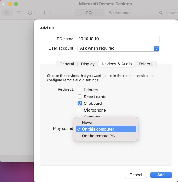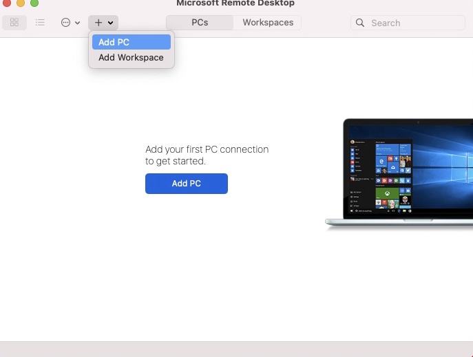 이후 앱을 실행하여 화면 또는 상단 메뉴의 “Add PC”를 클릭하여 PC를 추가합니다.