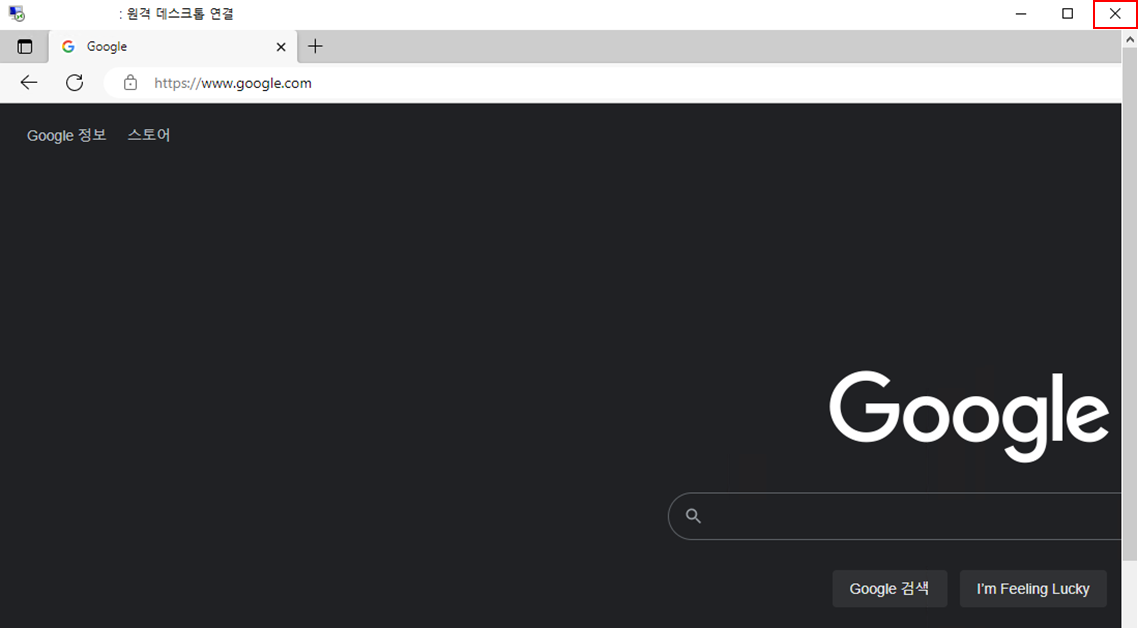 아래 화면과 같이 원격 데스크톱 연결이 완료되었고 종료는 우측 상단 'X' 선택 시 종료됩니다.